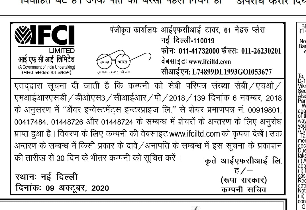 | आईएफसीआई - निगमित शासन प्रणाली पर दिशानिर्देश |